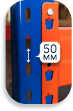 Шаг установки яруса - 50 мм. Легко подстроите стеллажи под любой тип груза — от низких коробок до высоких паллет. И склад не теряет вместимость при ассортименте.
